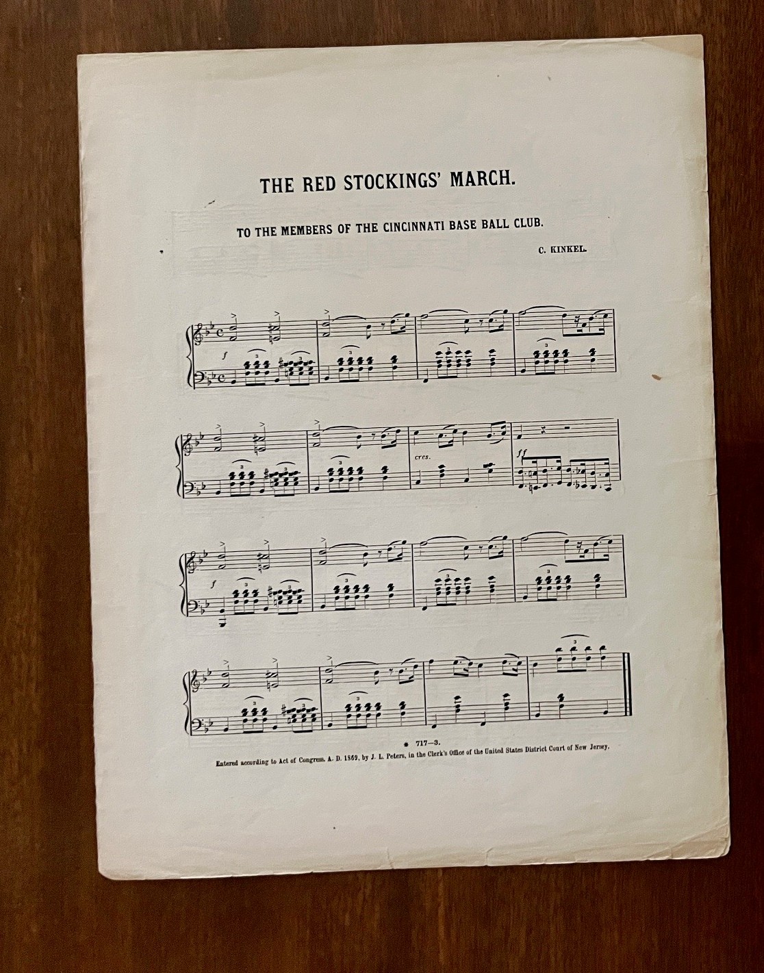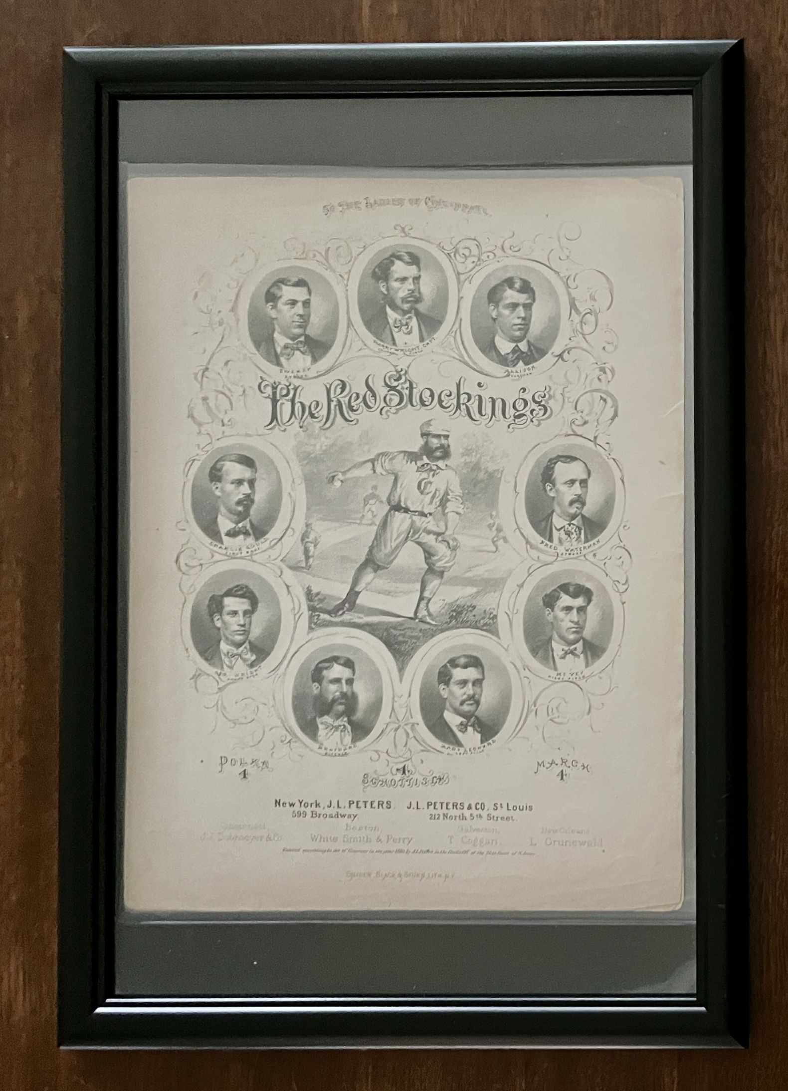 | Description: | 1869 Red Stockings Song Sheet with Wright Brothers - GOOD. Complete group of three song sheets with the 1869 Cincinnati Reds Team. The Undefeated team at 55-0 represents one of baseball greatest of all-time with the Pioneers of the game in George and Harry Wright. |